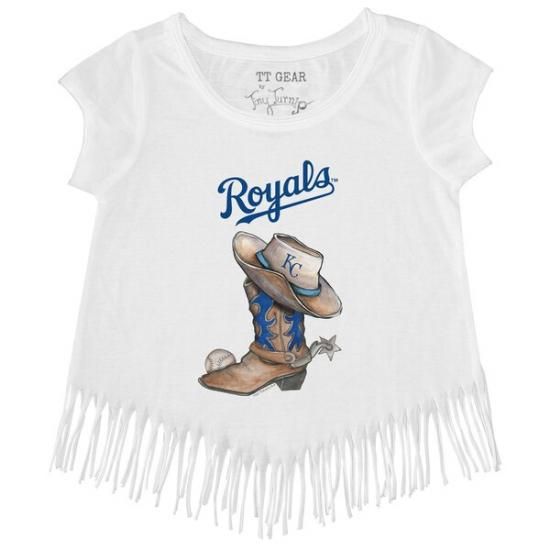 カンザスシティ・ロイヤルズ タイニー ターニプ ガール キッズ(歩き始めの子供) Cowboy Boot Fringe Tシャツ - ホワイトは、メジャーリーグ公認のMLBグッズです。