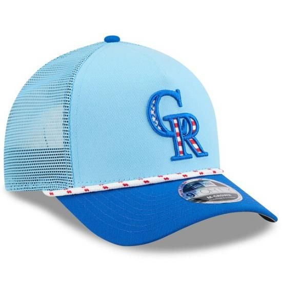コロラド・ロッキーズ New Era(ニューエラ) 2025 フォーth オブ July 9FORTY A-フレーム M-クラウン 調節可能 トラッカー ハット - ライト ブルー/ブルーは、メジャーリーグ公認のMLBグッズです。