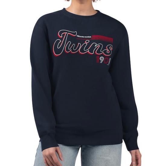 ミネソタ・ツインズ スターター レディース Groovy スクリプト チーム フリース プルオーバー スウェット - ネイビーは、メジャーリーグ公認のMLBグッズです。