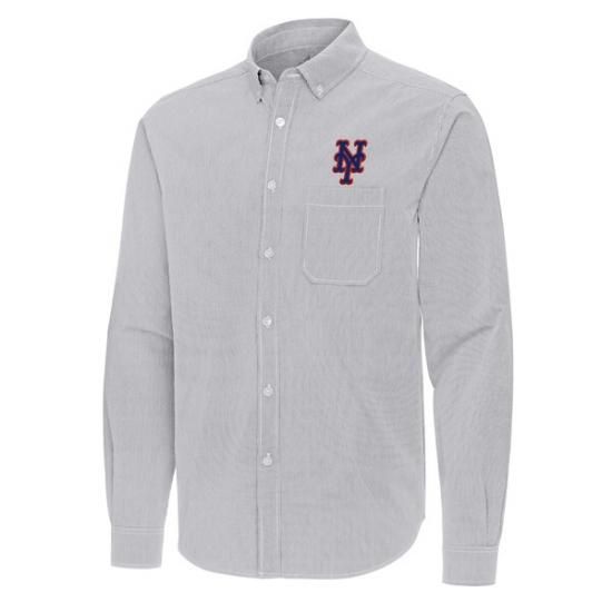 ニューヨーク・メッツ アンティグア Porter Woven ロングスリーブ ボタン-ダウン シャツ - グレーは、メジャーリーグ公認のMLBグッズです。