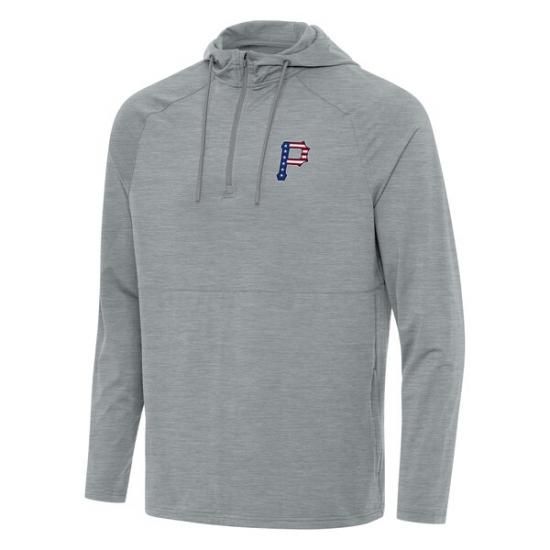 ピッツバーグ・パイレーツ アンティグア Spikes スター & ストライプ チーム ロゴ クォーター-ジップ プルオーバー パーカー - ヘザー グレーは、メジャーリーグ公認のMLBグッズです。