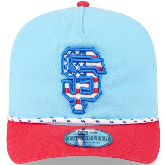 商品説明 サンフランシスコ・ジャイアンツ New Era(ニューエラ) 2025 フォーth オブ July ゴルフer スナップバック ハット - ライト ブルー/レッドは、メジャーリーグ公認のMLBグッズです。