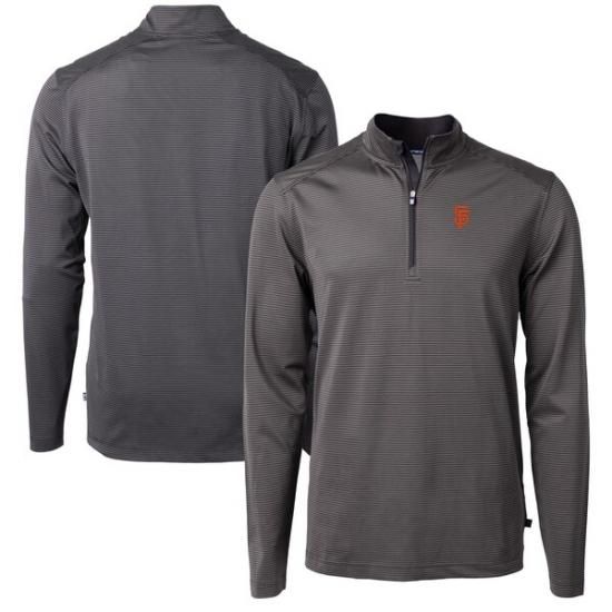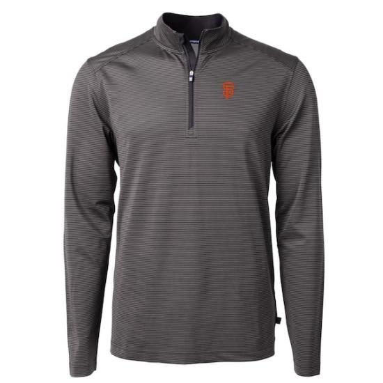 サンフランシスコ・ジャイアンツ Cutter &Buck Virtue Eco ピケ マイクロ ストライプ Recycled クォーター-ジップ プルオーバー トップ - ブラック/グレーは、メジャーリーグ公認のMLBグッズです。