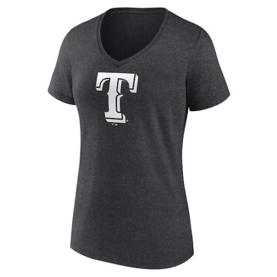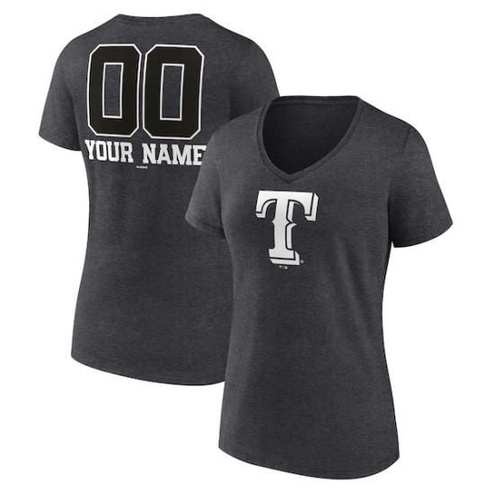 テキサス・レンジャーズ レディース パーソナライズ Mオンochrome ネーム&ナンバー Vネック Tシャツ - チャコールは、メジャーリーグ公認のMLBグッズです。