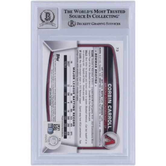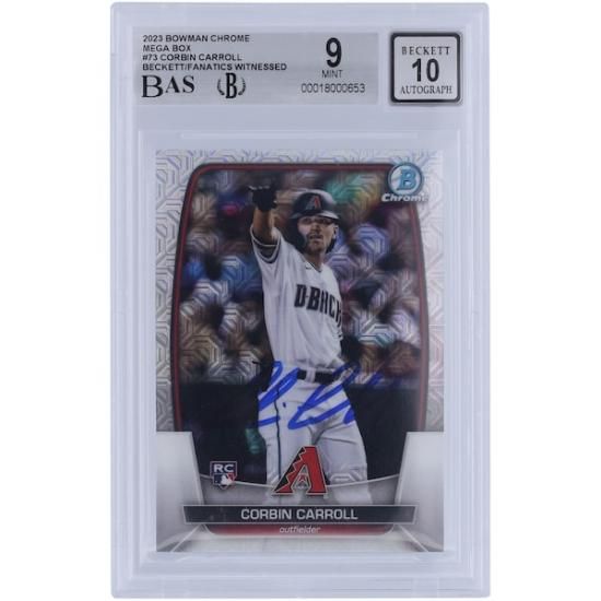 コービン・キャロル アリゾナ・ダイヤモンドバックス 直筆サイン入り 2023 リボンman クローム メガ ボックス #73 Beckett ファナティクス Witnessed オーセンティックアットed 9/10 ルーキー カードは、メジャーリーグ公認のMLBグッズです。