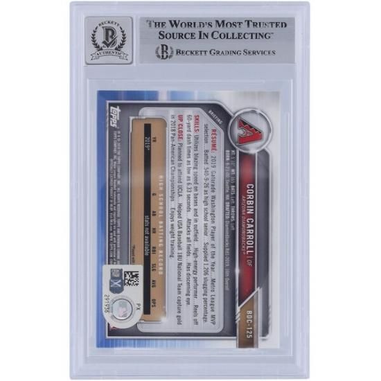 コービン・キャロル アリゾナ・ダイヤモンドバックス 直筆サイン入り 2019 リボンman クローム ドラフト #BDC-125 Beckett ファナティクス Witnessed オーセンティックアットed 9/10 カードは、メジャーリーグ公認のMLBグッズです。
