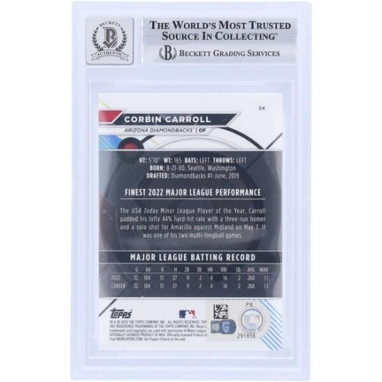 コービン・キャロル アリゾナ・ダイヤモンドバックス 直筆サイン入り 2023 トッププレーヤー Finest #24 Beckett ファナティクス Witnessed オーセンティックアットed 10 ルーキー カードは、メジャーリーグ公認のMLBグッズです。