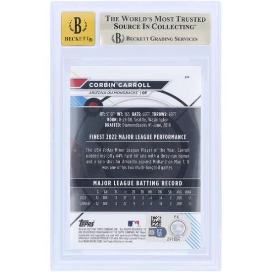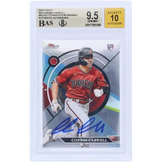 商品説明 コービン・キャロル アリゾナ・ダイヤモンドバックス 直筆サイン入り 2023 トッププレーヤー Finest #24 Beckett ファナティクス Witnessed オーセンティックアットed 9.5/10 ルーキー カードは、メジャーリーグ公認のMLBグッズです。