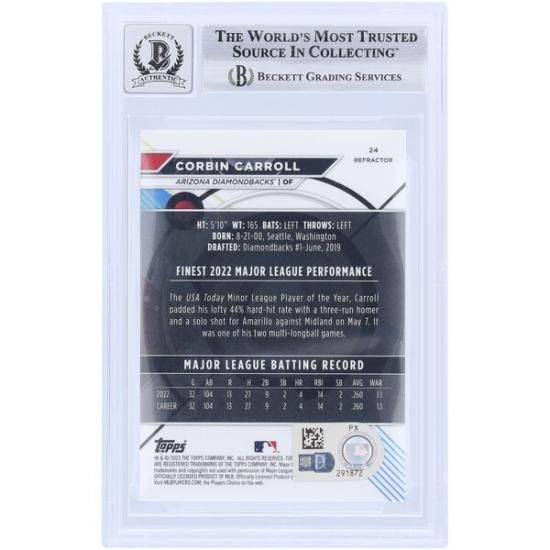 コービン・キャロル アリゾナ・ダイヤモンドバックス 直筆サイン入り 2023 トッププレーヤー Finest Refracトゥーrs #24 Beckett ファナティクス Witnessed オーセンティックアットed 10 ルーキー カードは、メジャーリーグ公認のMLBグッズです。