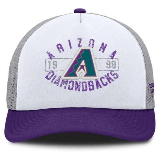 アリゾナ・ダイヤモンドバックス ファナティクス デザインアットed A-フレーム フォーム フロント トラッカー 調節可能 ハット - ホワイト/パープルは、メジャーリーグ公認のMLBグッズです。