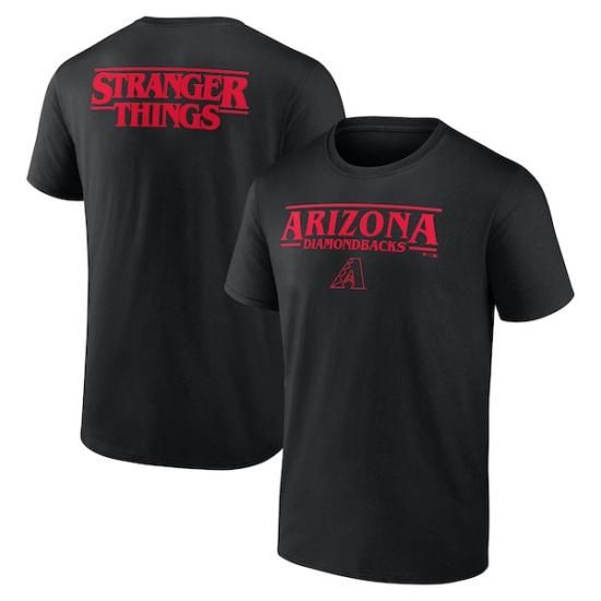 アリゾナ・ダイヤモンドバックス Stranger Things ロゴ ロックup Tシャツ - ブラックは、メジャーリーグ公認のMLBグッズです。