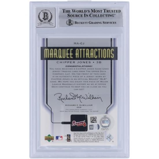 チッパー・ジョーンズ アトランタ・ブレーブス 直筆サイン入り 2005 アッパーデッキ社 Marquee Attractiオンs ユニフォーム Relic #MA-CJ Beckett ファナティクス Witnessed オーセンティックアットed 10 カードは、メジャーリーグ公認のMLBグッズです。