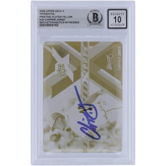 チッパー・ジョーンズ アトランタ・ブレーブス 直筆サイン入り 2008 アッパーデッキ社 X Xpオンential イエロー プリントing プレート #X-JO #1/1 Beckett ファナティクス Witnessed オーセンティックアットed 10 カードは、メジャーリーグ公認のMLBグッズです。