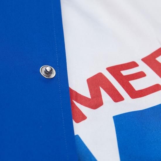 ブランド : ミッチェル&ネス インポートグッズ アップリケ付き(刺繍)s 選手のイメージ付き on interior 裏地 リブ編み(襟、袖口、ウエスト) 中程度の気温に適したジャケット(厚み:普通) 2つのフロントスリップポケット ロッカーループ 素材:ポリエステル100% ロングスリーブ 洗濯機洗い, 吊り干し フルスナップ 公式ライセンス