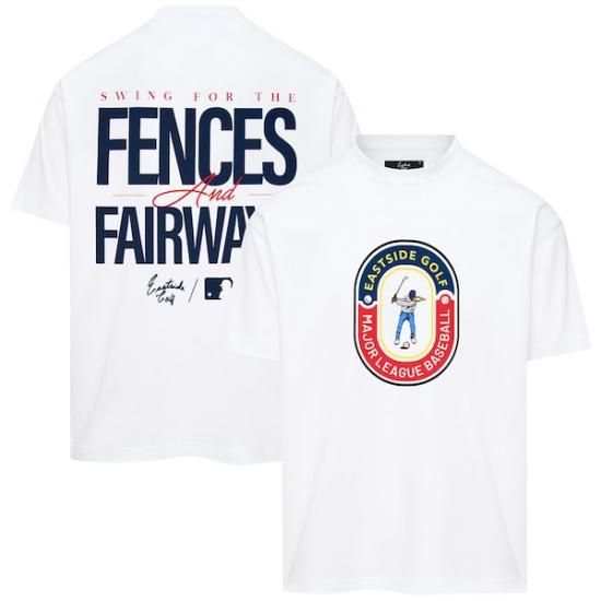 アトランタ・ブレーブス イーストside ゴルフ 2025 MLB オールスター ゲーム フェンスs & フェアウェイs Tシャツ - ホワイトは、メジャーリーグ公認のMLBグッズです。