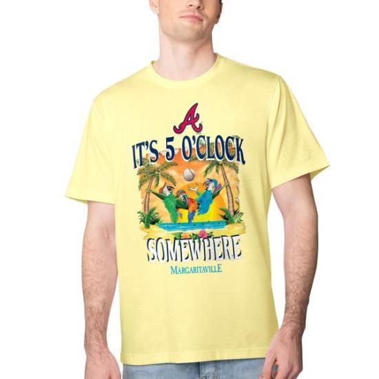 アトランタ・ブレーブス Margaritaville Five O'時計 グラフィック Tシャツ - イエローは、メジャーリーグ公認のMLBグッズです。