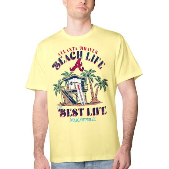 アトランタ・ブレーブス Margaritaville ビーチ Hut グラフィック Tシャツ - イエローは、メジャーリーグ公認のMLBグッズです。