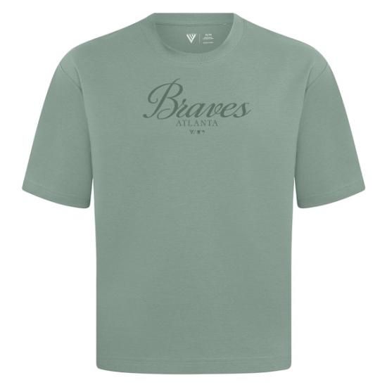 アトランタ・ブレーブス レベルウエア Ethereal オーバーサイズ Luxe シグネクチャー ニット Tシャツ - グリーンは、メジャーリーグ公認のMLBグッズです。