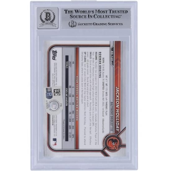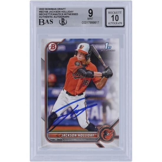 ジャクソン・ホリデイ ボルティモア・オリオールズ 直筆サイン入り 2022 リボンman ドラフト #BD-168 Beckett ファナティクス Witnessed オーセンティックアットed 9/10 カードは、メジャーリーグ公認のMLBグッズです。