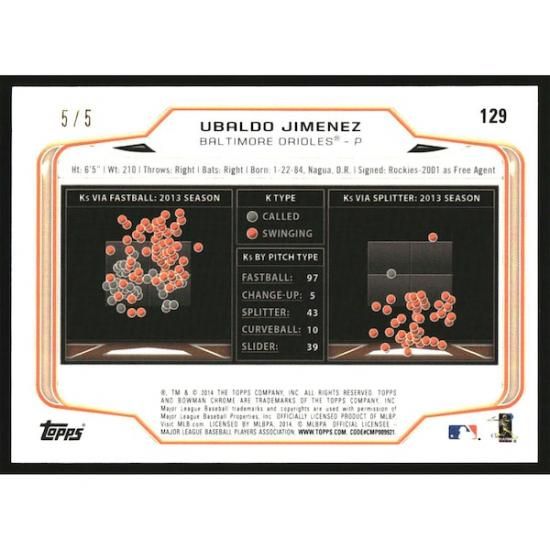 商品説明 2014 リボンman クローム レッド Refracトゥーr #129 Ubaldo Jimenez /5は、メジャーリーグ公認のMLBグッズです。