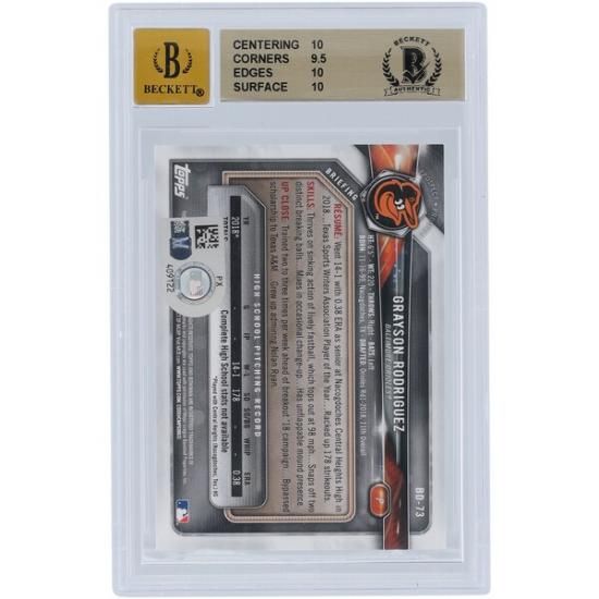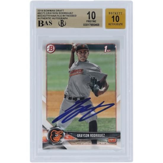 グレイソン・ロドリゲス ボルティモア・オリオールズ 直筆サイン入り 2018 リボンman ドラフト 1st リボンman #BD-73 Beckett ファナティクス Witnessed オーセンティックアットed 10/10 カード - 10,9.5,10,10 Subgradesは、メジャーリーグ公認のMLBグッズです。