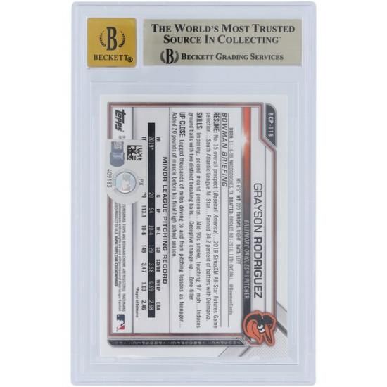 グレイソン・ロドリゲス ボルティモア・オリオールズ 直筆サイン入り 2021 リボンman クローム プロspects Sapphire #BCP-118 Beckett ファナティクス Witnessed オーセンティックアットed 9.5/10 カードは、メジャーリーグ公認のMLBグッズです。