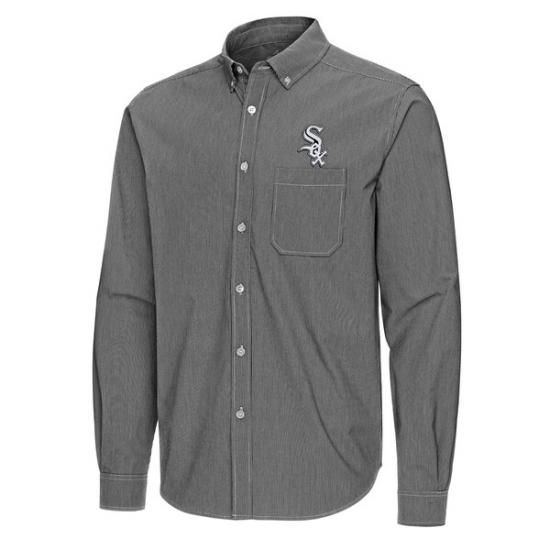 シカゴ・ホワイトソックス アンティグア Porter Woven ロングスリーブ ボタン-ダウン シャツ - ブラックは、メジャーリーグ公認のMLBグッズです。