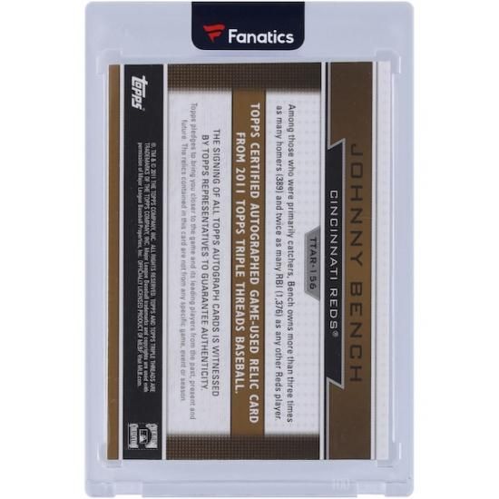 ジョニー・ベンチ シンシナティ・レッズ 直筆サイン入り 2011 トッププレーヤー トリプル スレーズ ゲーム ユーズド Relic #TTAR-156 #7/9 カードは、メジャーリーグ公認のMLBグッズです。