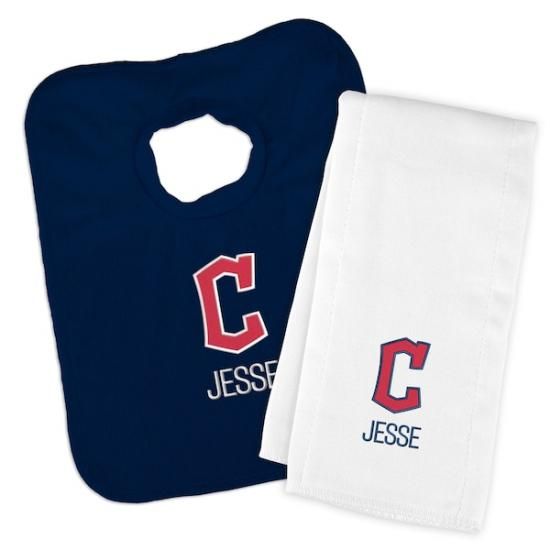 クリーブランド・ガーディアンズ Chad & Jake キッズ パーソナライズ ブロック C よだれかけ & バープ クロス セット - ネイビーは、メジャーリーグ公認のMLBグッズです。