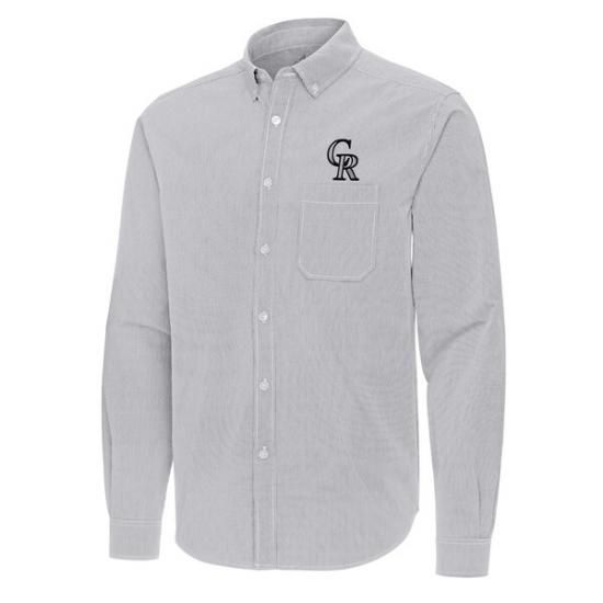 コロラド・ロッキーズ アンティグア Porter Woven ロングスリーブ ボタン-ダウン シャツ - グレーは、メジャーリーグ公認のMLBグッズです。