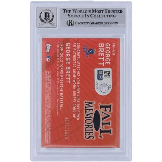 商品説明 ジョージ・ブレット カンザスシティ・ロイヤルズ 直筆サイン入り 2002 トッププレーヤー Pristine フォール メモリーズ Jersery Relic #FM-GB #/1000 Beckett ファナティクス Witnessed オーセンティックアットed 9/10 カードは、メジャーリーグ公認のMLBグッズです。