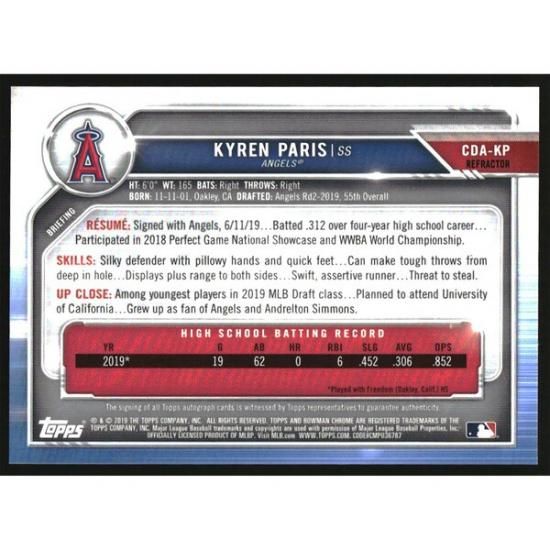 商品説明 2019 リボンman ドラフト クローム Pick オートgraphs Refracトゥーr #CDA-KP Kyren Paris オート /499は、メジャーリーグ公認のMLBグッズです。