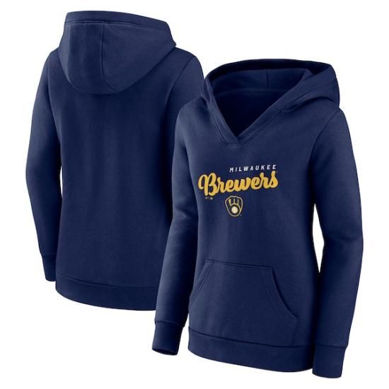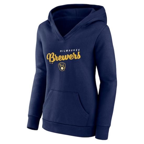 ミルウォーキー・ブルワーズ ロゴ アスレチック レディース ロゴ Triumphant Vネック プルオーバー パーカー - ネイビーは、メジャーリーグ公認のMLBグッズです。