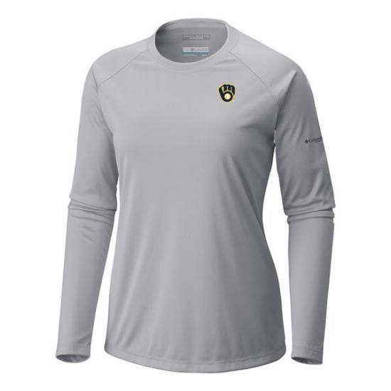 ミルウォーキー・ブルワーズ コロンビア Tidal T-シャツ II ロングスリーブ Tシャツ - グレーは、メジャーリーグ公認のMLBグッズです。