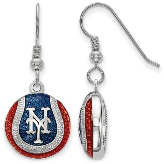 ニューヨーク・メッツ レディース スターリング シルバー Enameled ベースボール イヤリング