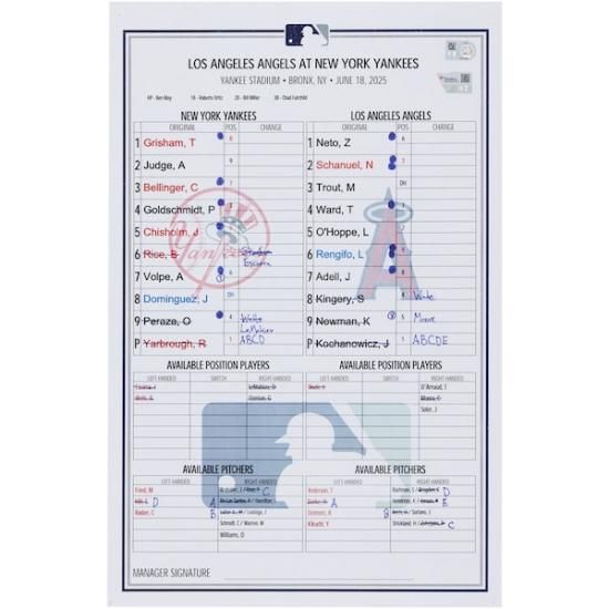 商品説明 ニューヨーク・ヤンキース ファナティクス オーセンティック 実際の試合で使用された ラインアップ カード vs. ロサンゼルス・エンゼルス オン June 18, 2025は、メジャーリーグ公認のMLBグッズです。