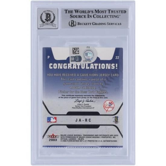 Roger Clemens ニューヨーク・ヤンキース 直筆サイン入り 2003 フリー契約選手 Authentix ツー-カラー ユニフォーム Relic #JA-RC Beckett ファナティクス Witnessed オーセンティックアットed 10 カードは、メジャーリーグ公認のMLBグッズです。