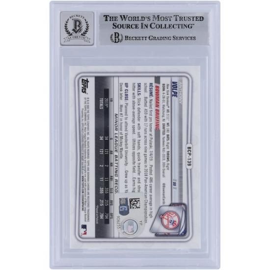 アンソニー・ボルピー ニューヨーク・ヤンキース 直筆サイン入り 2020 リボンman クローム プロspects Sapphire #BCP-139 Beckett ファナティクス Witnessed オーセンティックアットed 9/10 カードは、メジャーリーグ公認のMLBグッズです。