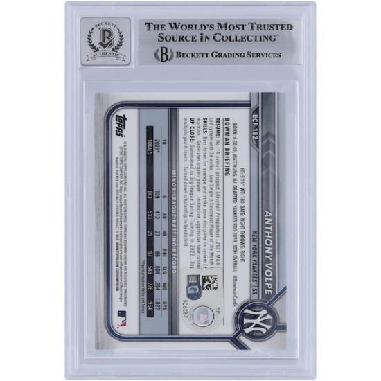 アンソニー・ボルピー ニューヨーク・ヤンキース 直筆サイン入り 2022 リボンman クローム プロspects Sapphire #BCP-182 Beckett ファナティクス Witnessed オーセンティックアットed 9/10 カードは、メジャーリーグ公認のMLBグッズです。