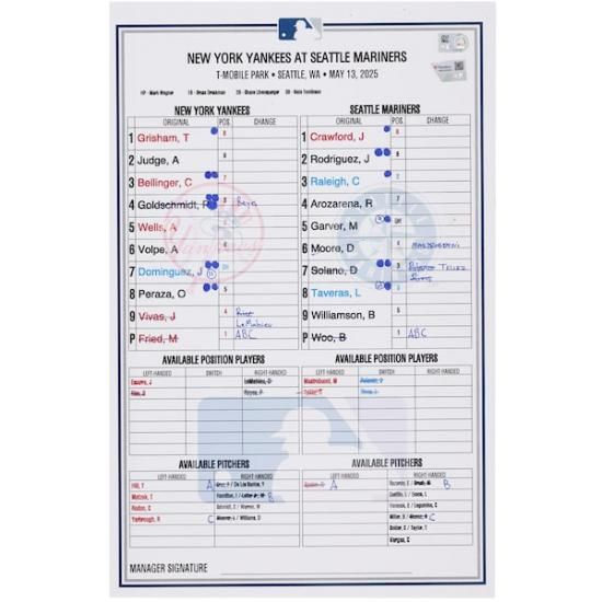 商品説明 ニューヨーク・ヤンキース ファナティクス オーセンティック 実際の試合で使用された ラインアップ カード vs. シアトル・マリナーズ オン May 13, 2025は、メジャーリーグ公認のMLBグッズです。