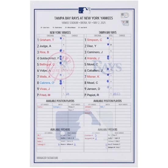 商品説明 ニューヨーク・ヤンキース ファナティクス オーセンティック 実際の試合で使用された ラインアップ カード vs. タンパベイ・レイズ オン May 2, 2025 は、メジャーリーグ公認のMLBグッズです。