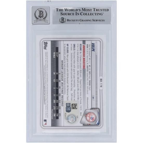 ブランド:Bowman アメリカ製 Obtained under the auspices of the Major League ベースball Authentication Program and can be verified by its numbered ホログラム at MLB.com Encapsulated in a tamper-proof acrylic case サインはそれぞれ異なります This item is non-returnable Grade: 10 公式ライセンス