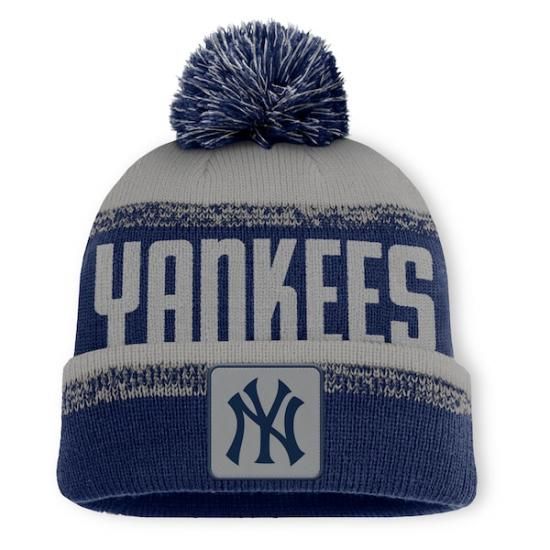 ニューヨーク・ヤンキース ファナティクス No-Doubter 折り返し ニット帽 with ポンポン - ネイビー/グレーは、メジャーリーグ公認のMLBグッズです。