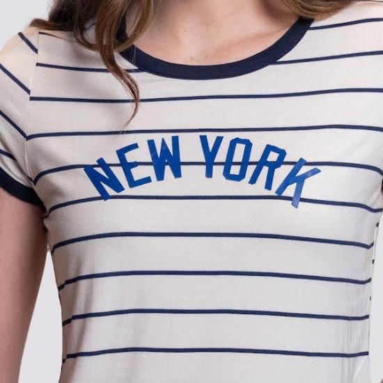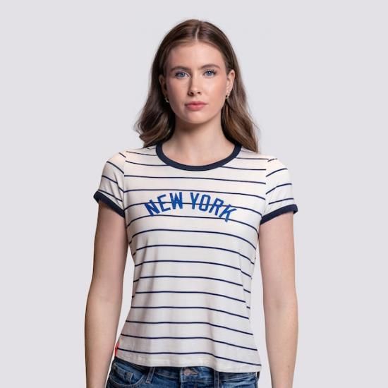 ニューヨーク・ヤンキース Lusso レディース Nアットasha ストライプ Tシャツ - ホワイ