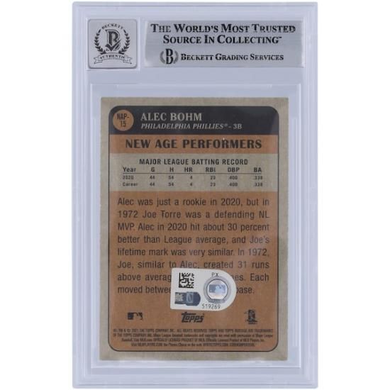 Alec Bohm フィラデルフィア・フィリーズ 直筆サイン入り 2021 トッププレーヤー ヘリテージ New Age Performers #NAP-15 Beckett ファナティクス Witnessed オーセンティックアットed 9/10 ルーキー カードは、メジャーリーグ公認のMLBグッズです。