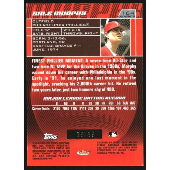 商品説明 2005 トッププレーヤー Finest Refracトゥーrs ブラック #164 デール・マーフィー? /99は、メジャーリーグ公認のMLBグッズです。