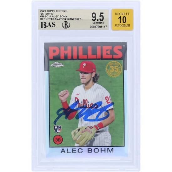 商品説明 Alec Bohm フィラデルフィア・フィリーズ 直筆サイン入り 2021 トッププレーヤー クローム '86 トッププレーヤー #86BC-14 Beckett ファナティクス Witnessed オーセンティックアットed 9.5/10 ルーキー カードは、メジャーリーグ公認のMLBグッズです。