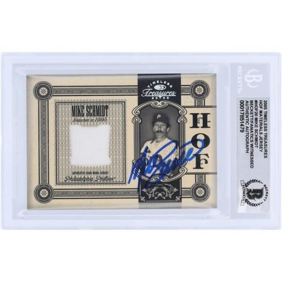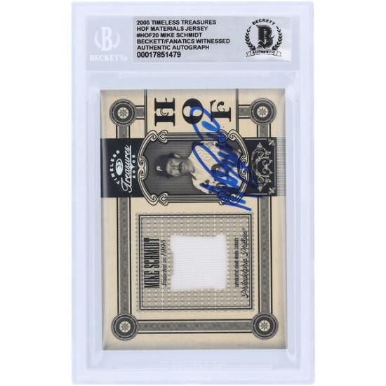 マイク・シュミット フィラデルフィア・フィリーズ 直筆サイン入り 2005 Dオンruss タイムレス Treasures 殿堂入り マテリアルs GU ユニフォーム ホワイト Relic #殿堂入り-20 #/50 Beckett ファナティクス Witnessed オーセンティックアットed 10 カードは、メジャーリーグ公認のMLBグッズです。