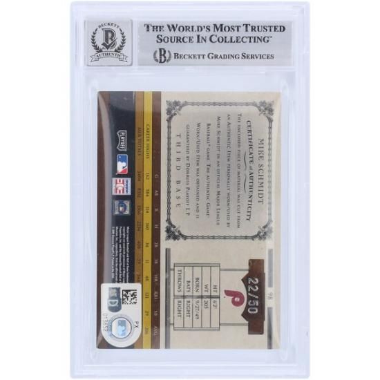 マイク・シュミット フィラデルフィア・フィリーズ 直筆サイン入り 2005 Dオンruss プレイオフ Prime カットs GU Relic #98 #/50 Beckett ファナティクス Witnessed オーセンティックアットed 10 カードは、メジャーリーグ公認のMLBグッズです。