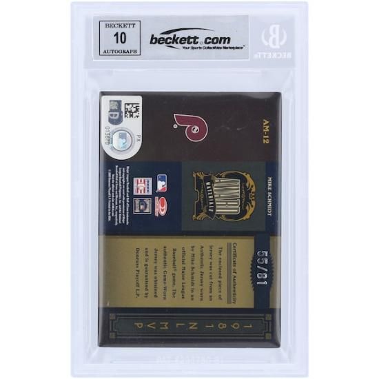 マイク・シュミット フィラデルフィア・フィリーズ 直筆サイン入り 2005 Dオンruss タイムレス Treasures Award マテリアルs 1981 GU ホワイト Relic #AM-12 #/81 Beckett ファナティクス Witnessed オーセンティックアットed 10 カードは、メジャーリーグ公認のMLBグッズです。